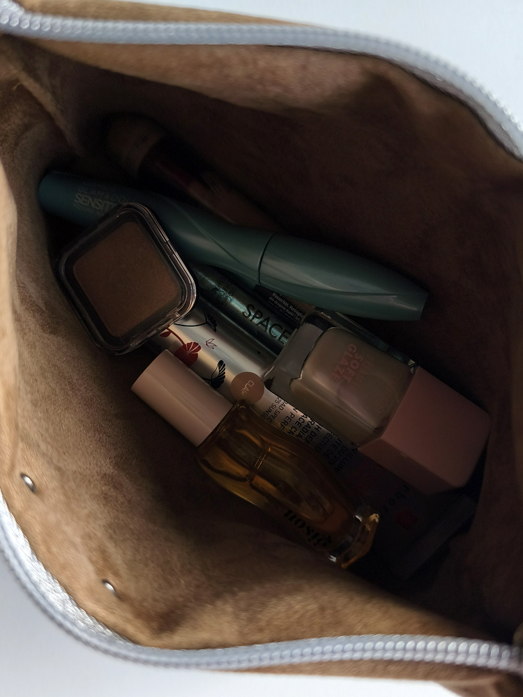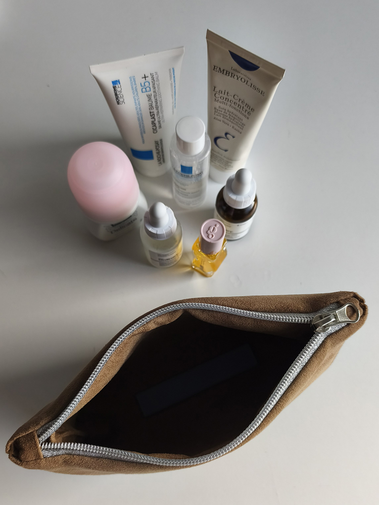 Available in two sizes, the Mini Cosmetic Bag is ideal for everyday essentials and fits perfectly inside smaller bags, while the Maxi Cosmetic Bag offers more space for extended beauty routines or travel, making it a versatile companion for both daily use and longer stays.