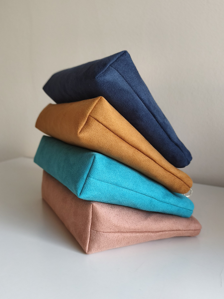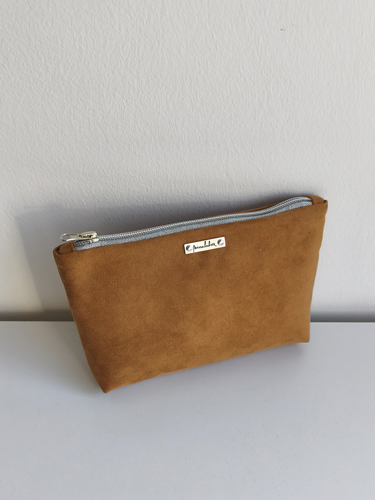 The ninaluba Cosmetic Bag is a distinctive, handcrafted accessory made by the designer herself. Crafted from soft faux suede, it features a decorative zipper and a fully lined interior, designed to keep your beauty essentials neatly organized. A silver-patina brand logo adds a subtle, refined finishing touch.