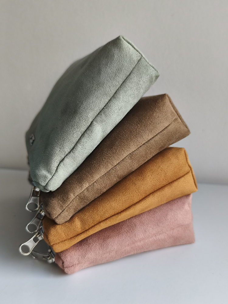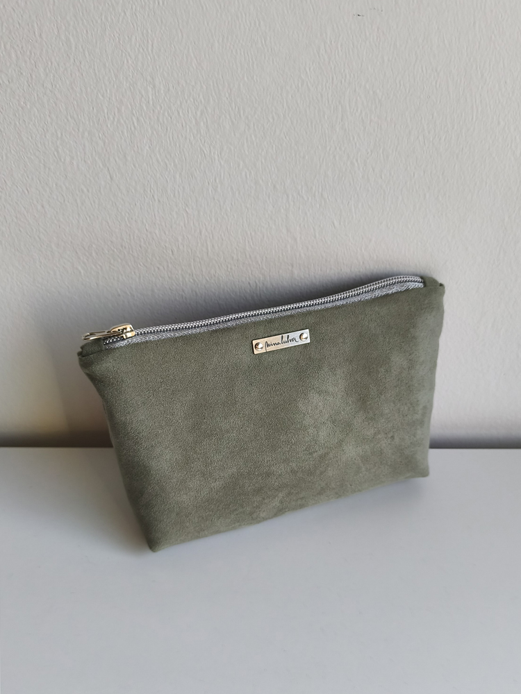 The ninaluba Cosmetic Bag is a distinctive, handcrafted accessory made by the designer herself. Crafted from soft faux suede, it features a decorative zipper and a fully lined interior, designed to keep your beauty essentials neatly organized. A silver-patina brand logo adds a subtle, refined finishing touch.
